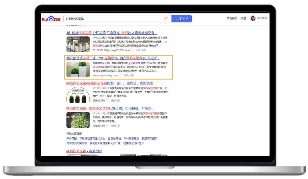 官網優化:陜西鐵藝花箱、陜西PVC花箱、西安廣場花箱、西*鋁花箱、西安工程花箱等關鍵詞,穩居百度首頁展示,助力巖之隆實現推廣轉化、*獲客。
