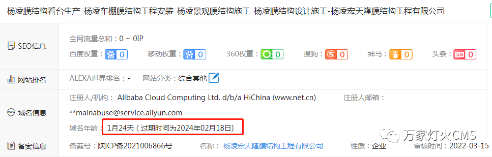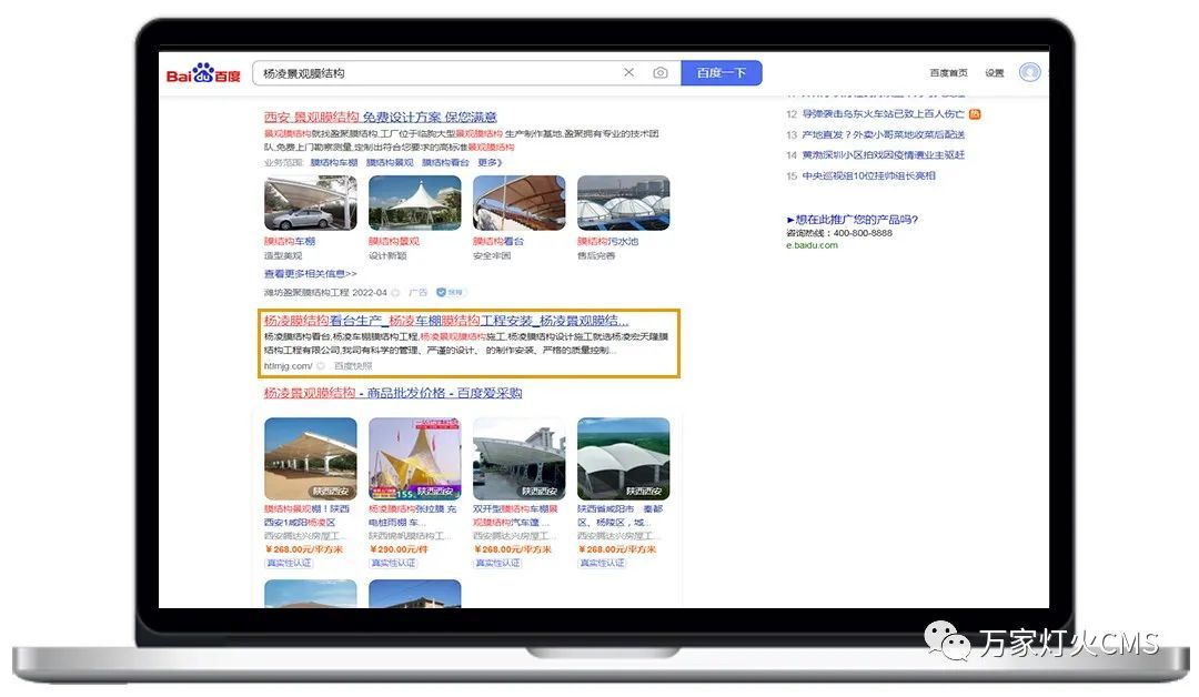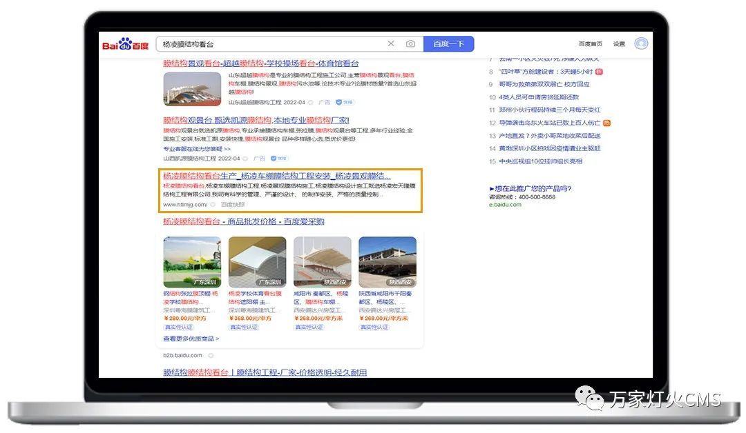 楊凌宏天隆膜結(jié)構(gòu)工程有限公司選擇與萬家燈火合作營(yíng)銷型網(wǎng)站——萬家燈火CMS系統(tǒng)。網(wǎng)站上線后,不僅拓展了產(chǎn)品銷售渠道,節(jié)省了大量宣傳及運(yùn)營(yíng)成本,還收獲了不少流量訪客。